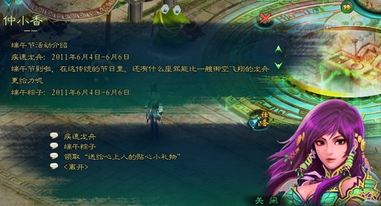 节日期间,每天可在NPC处领取1天时限的龙舟坐骑